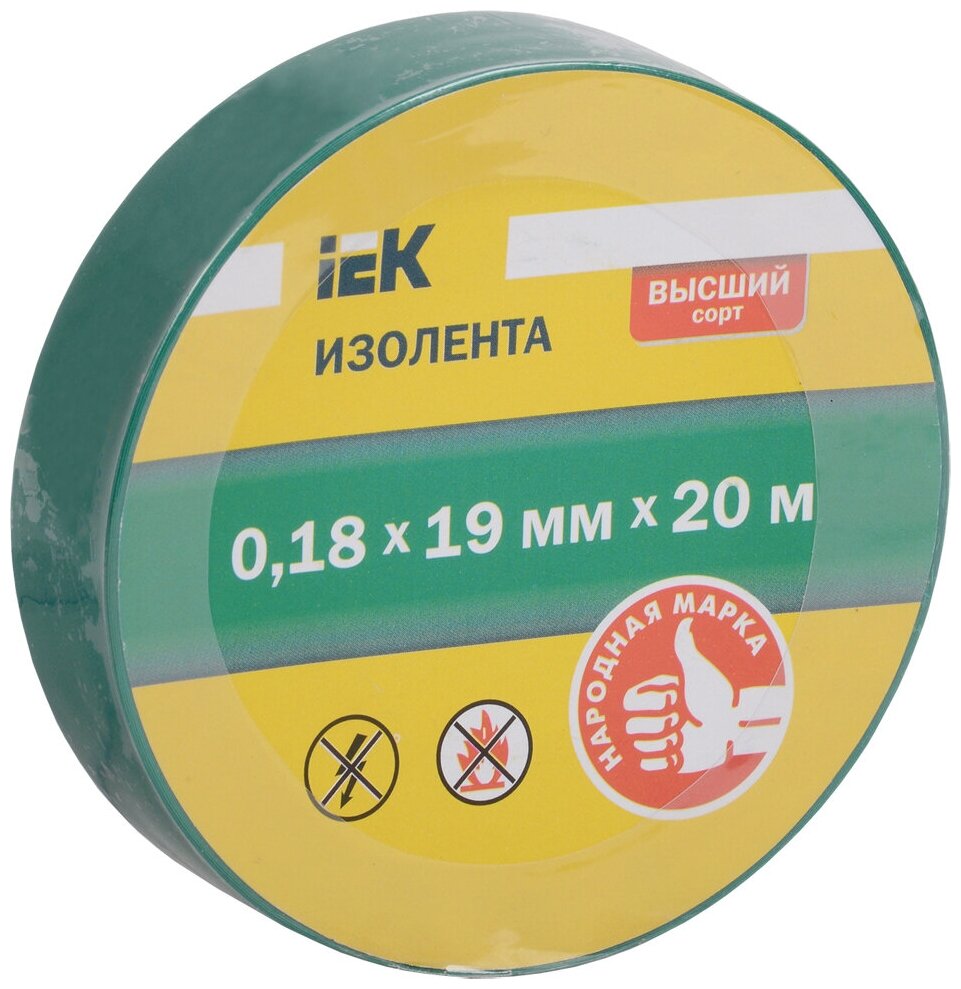 Изолента ПВХ зеленая 19мм 20м / IEK; арт. UIZ-20-10-K06; оригинал