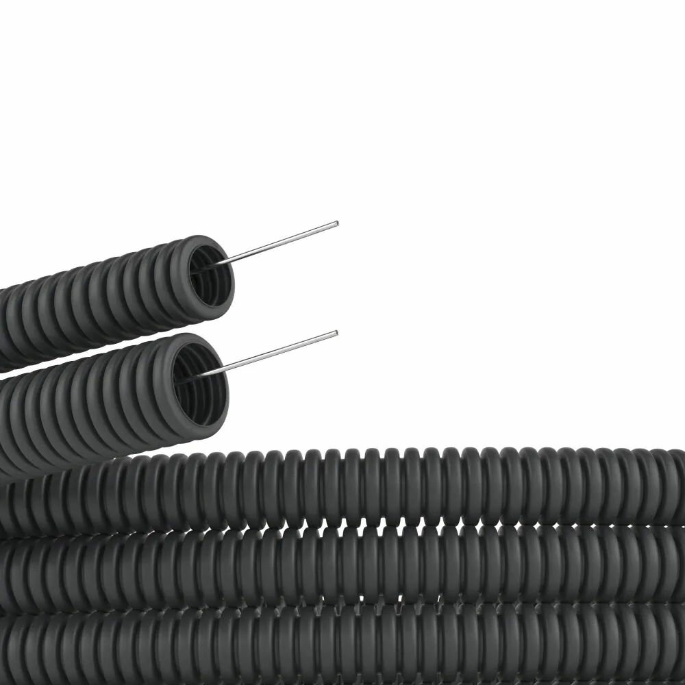 Труба ПНД IEK гофрированная D16 легкая с зондом черная (комплект из 100 м)