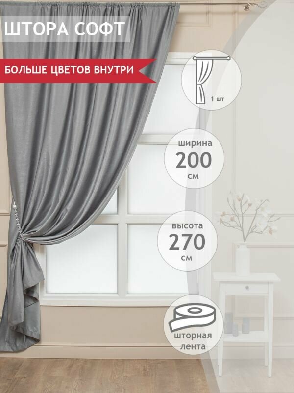 Портьера Amore Mio софт, 200*270 см, серый