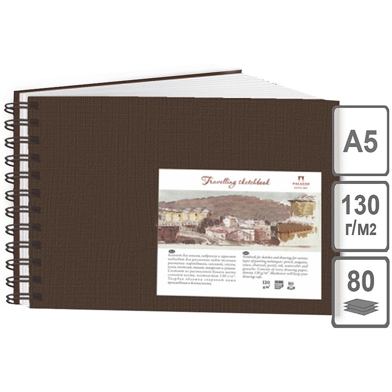 Купить Лилия-Холдинг Скетчбук "Travelling" А5 80л, 130гр\м2 шоколад, горизонтальный на пружине