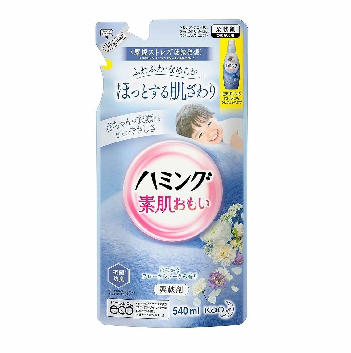 Кондиционер-ополаскиватель KAO Humming для детского и взрослого белья цветочный аромат антистатик, сменная упаковка 540 мл