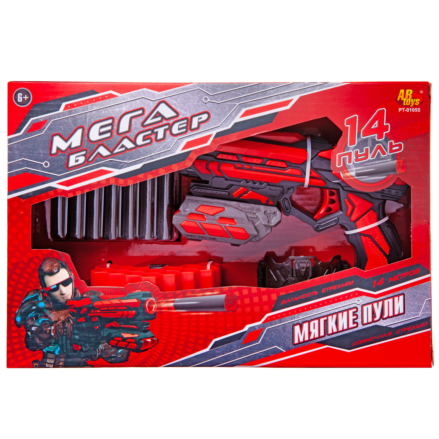 Купить Бластер Abtoys Мегабластер красно-черный в наборе с аксессуарами и 14 мягкими пулями