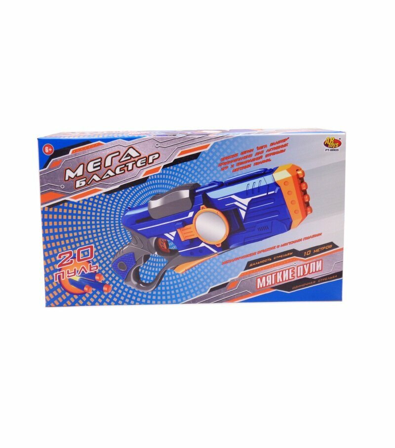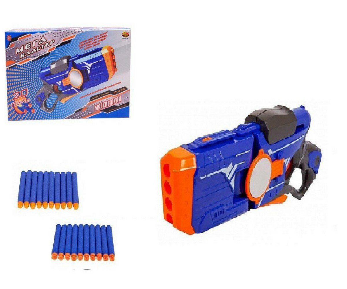 Купить Мегабластер Бластер синий с 20 мягкими пулями, в коробке