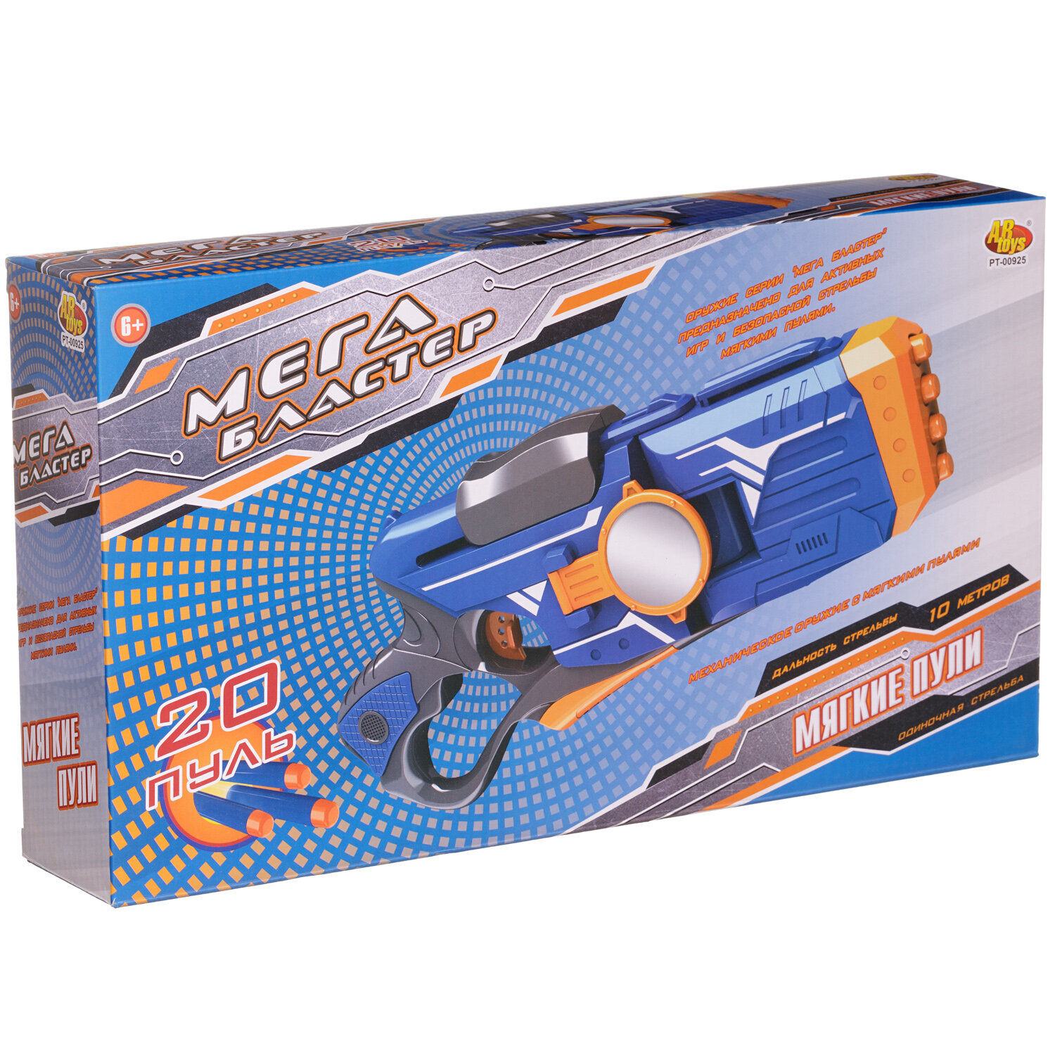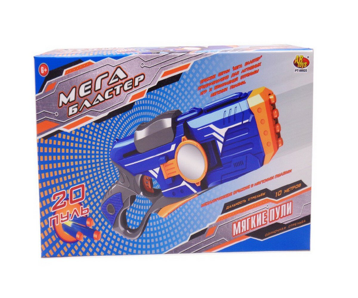 Бластер Abtoys Мегабластер синий с 20 мягкими пулями, в коробке PT-00925