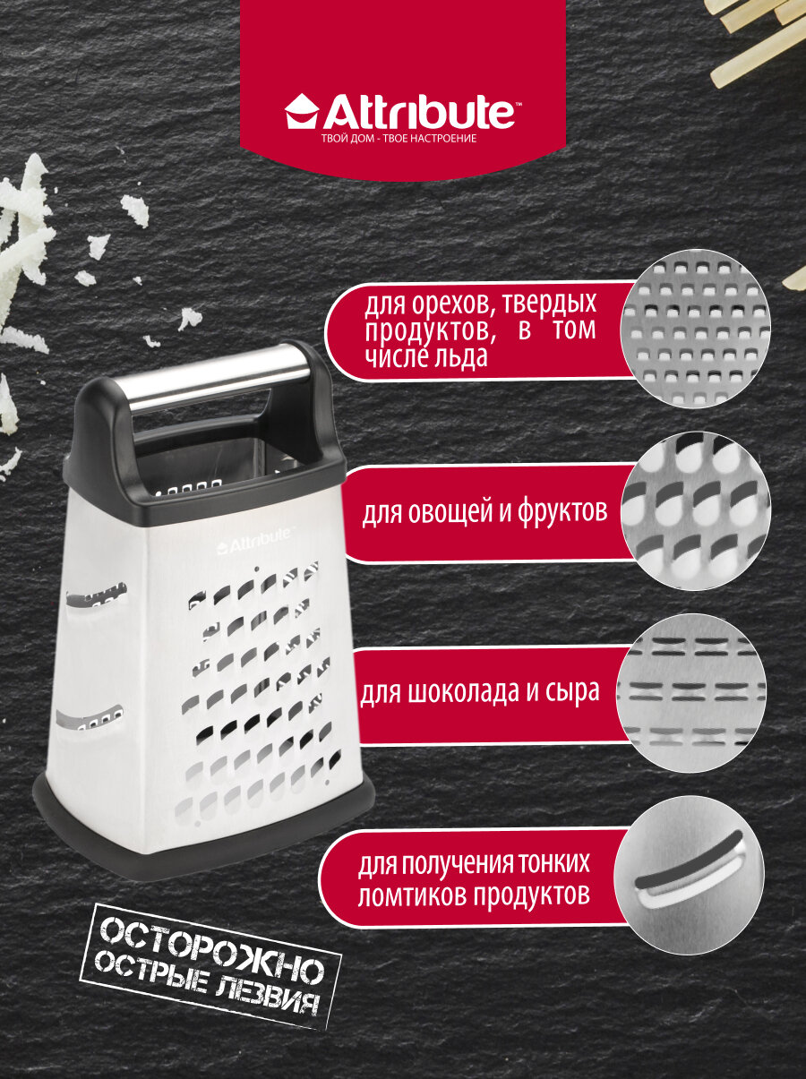 Терка ATTRIBUTE Razor 4-х гранная универсальная без поддона нерж.сталь, пластик