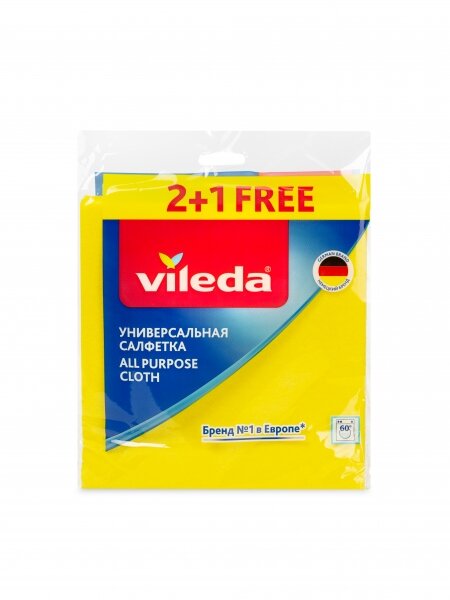 Салфетка универсальная вискозная для уборки Vileda, 1 уп/2+1 шт, желтый