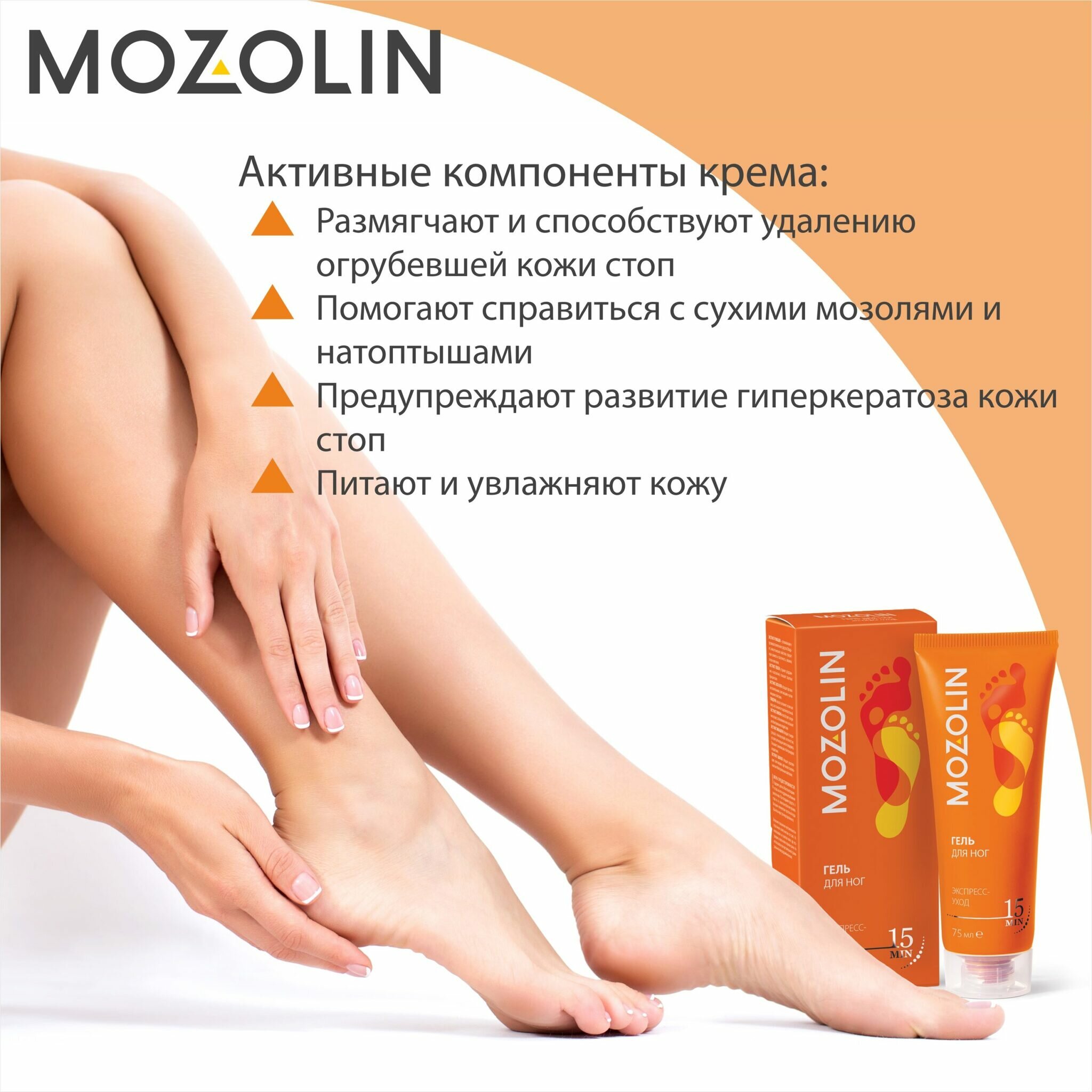 Мозолин Экспресс - педикюр за 15 минут гель для удаления огрубевшей кожи стоп, 75мл. От мозолей и натоптышей