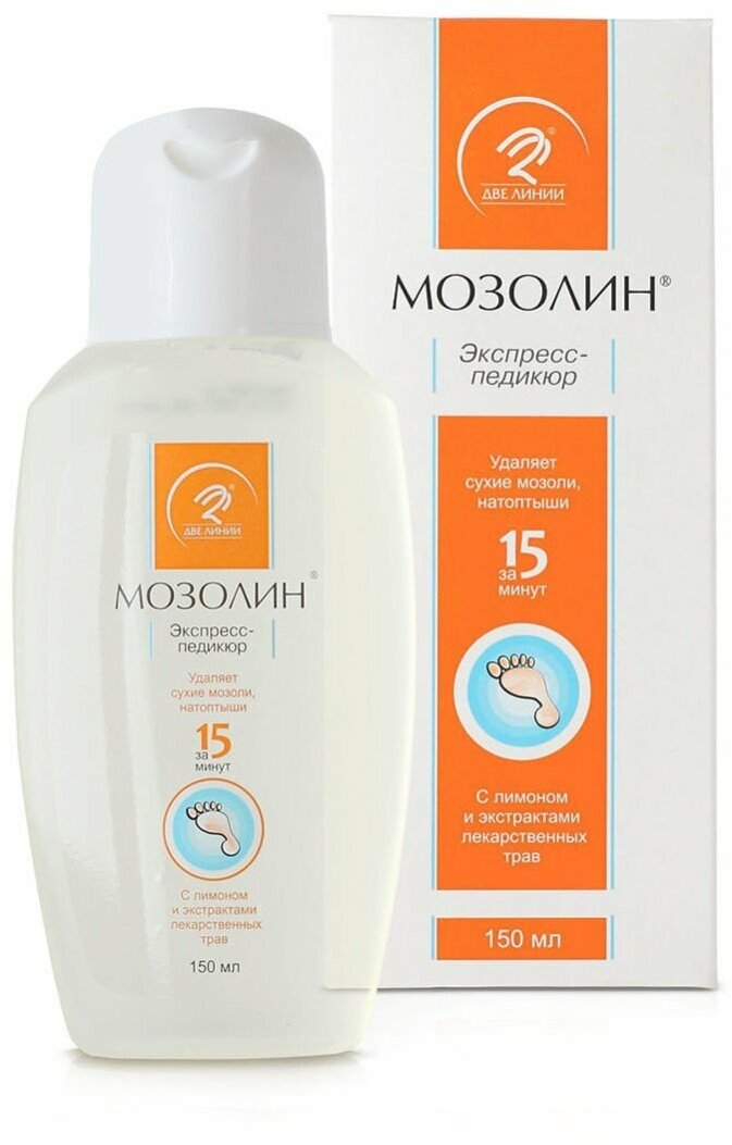 Экспресс-педикюр Мозолин. Средство для удаления мозолей и натоптышей, Две линии, 150 мл