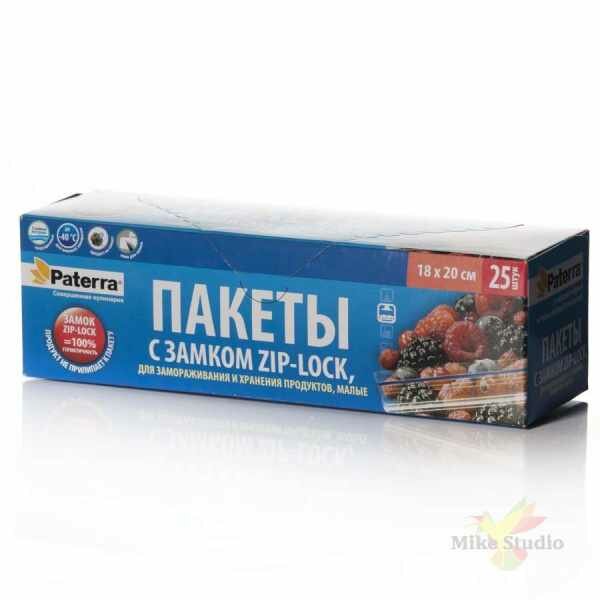 Пакеты для хранения и замораживания с замком ZIP-LOCK PATERRA 18х20 см, 1 л, 40 мкм в футляре 109-194