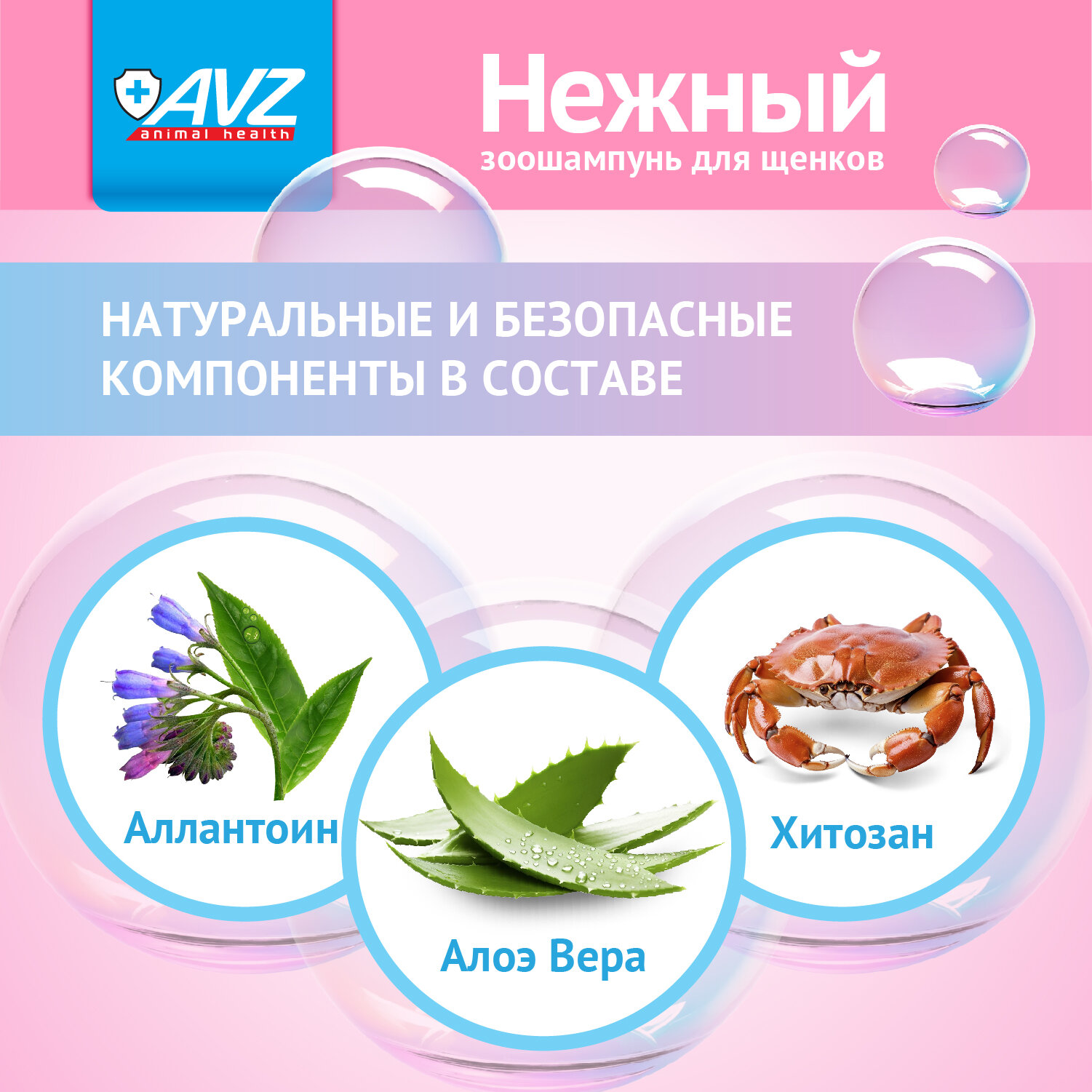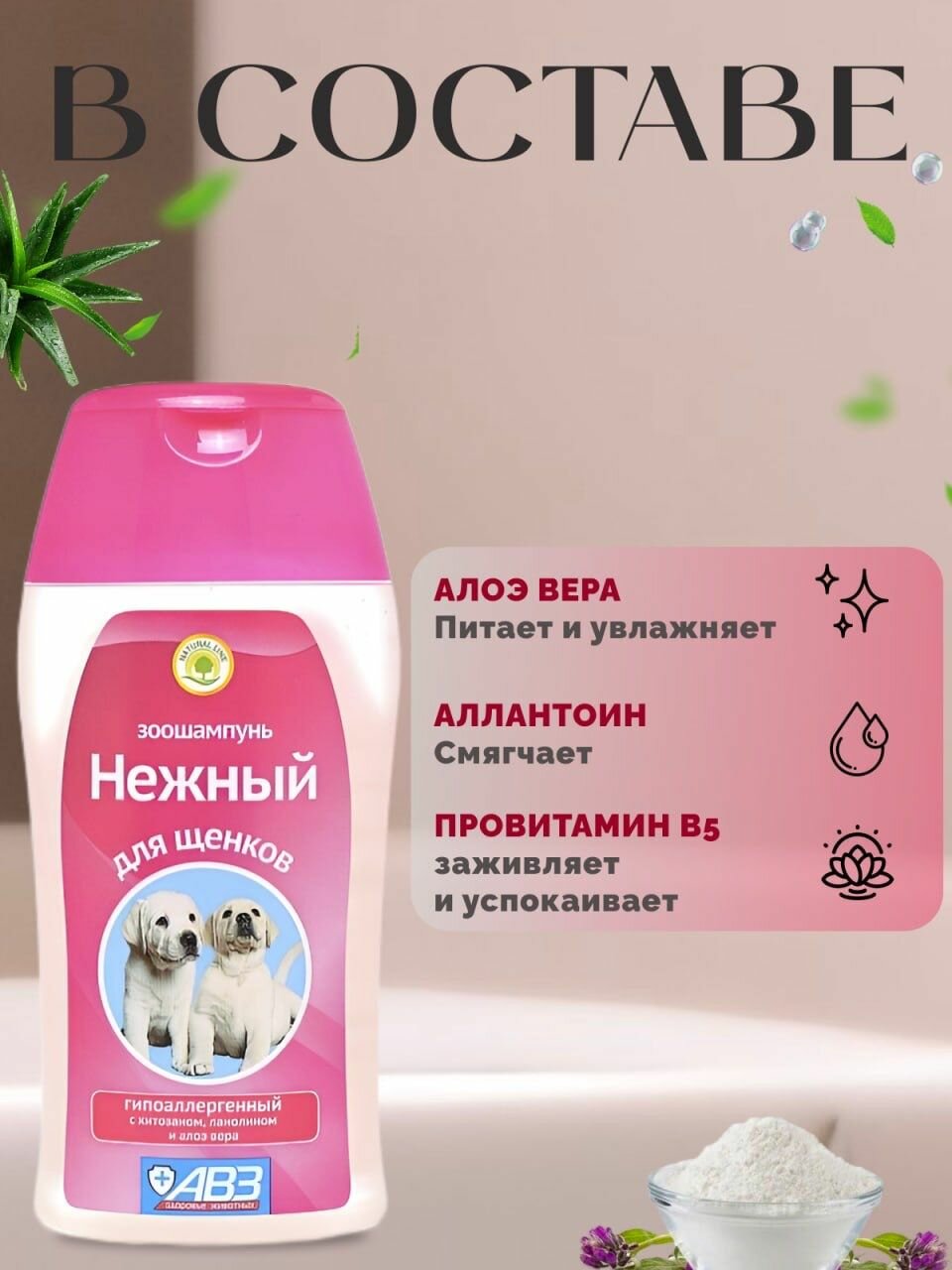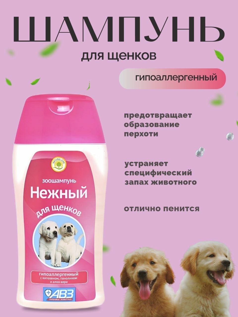 Шампунь Нежный гипоаллергенный для щенков с хитозаном, ланолином и Алоэ вера АВЗ (180 мл)