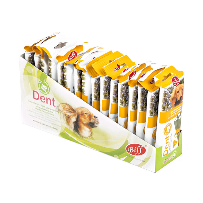 Лакомство для собак средних пород Biff DENT, Жевательный снек для чистки зубов со вкусом телятины 77 г.