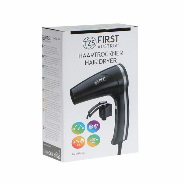 Фен FIRST 5655-1-BA, 1200 Вт, крепление на стене, 1 скорость, 2 температурных режима, чёрный