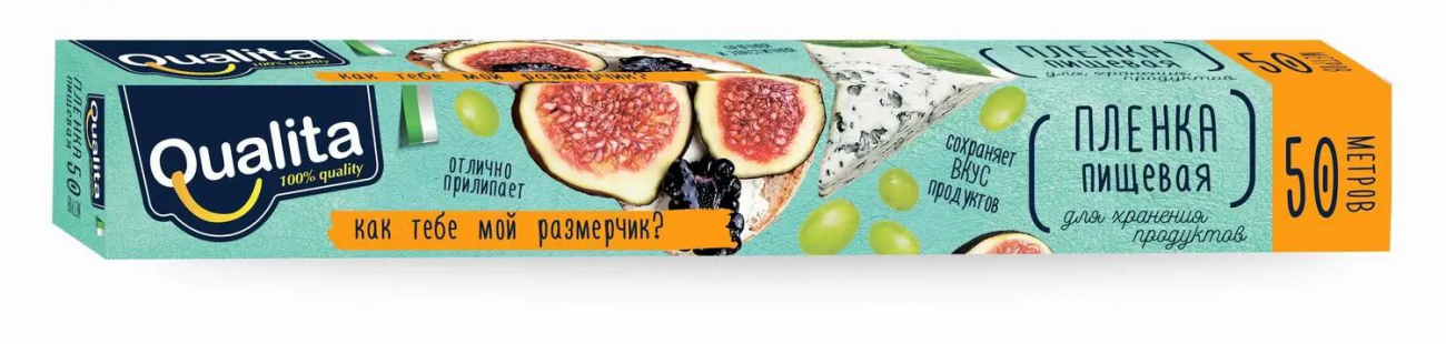Пленка пищевая Qualita Для упаковки и хранения продуктов, 50 м, в рулоне