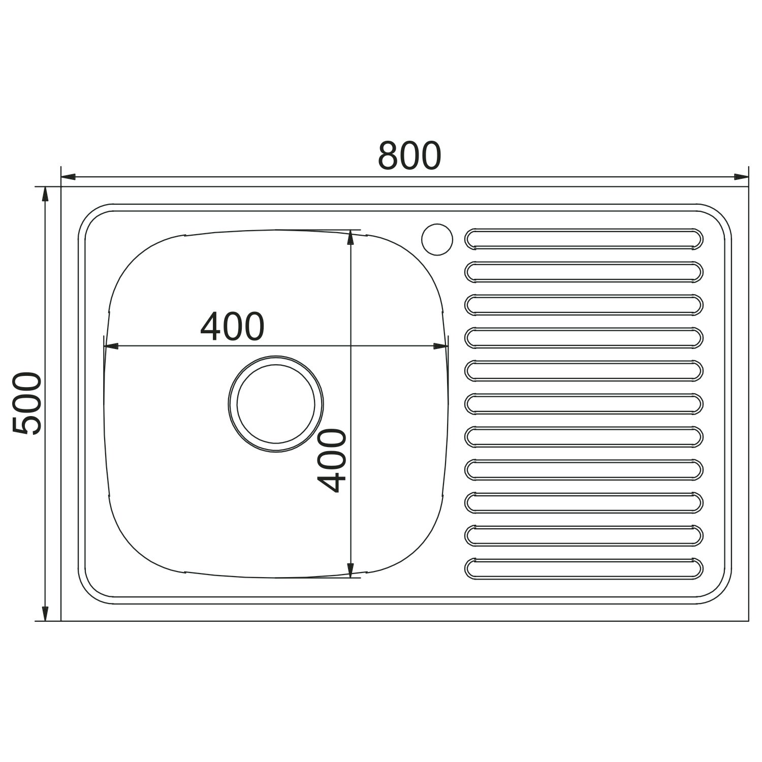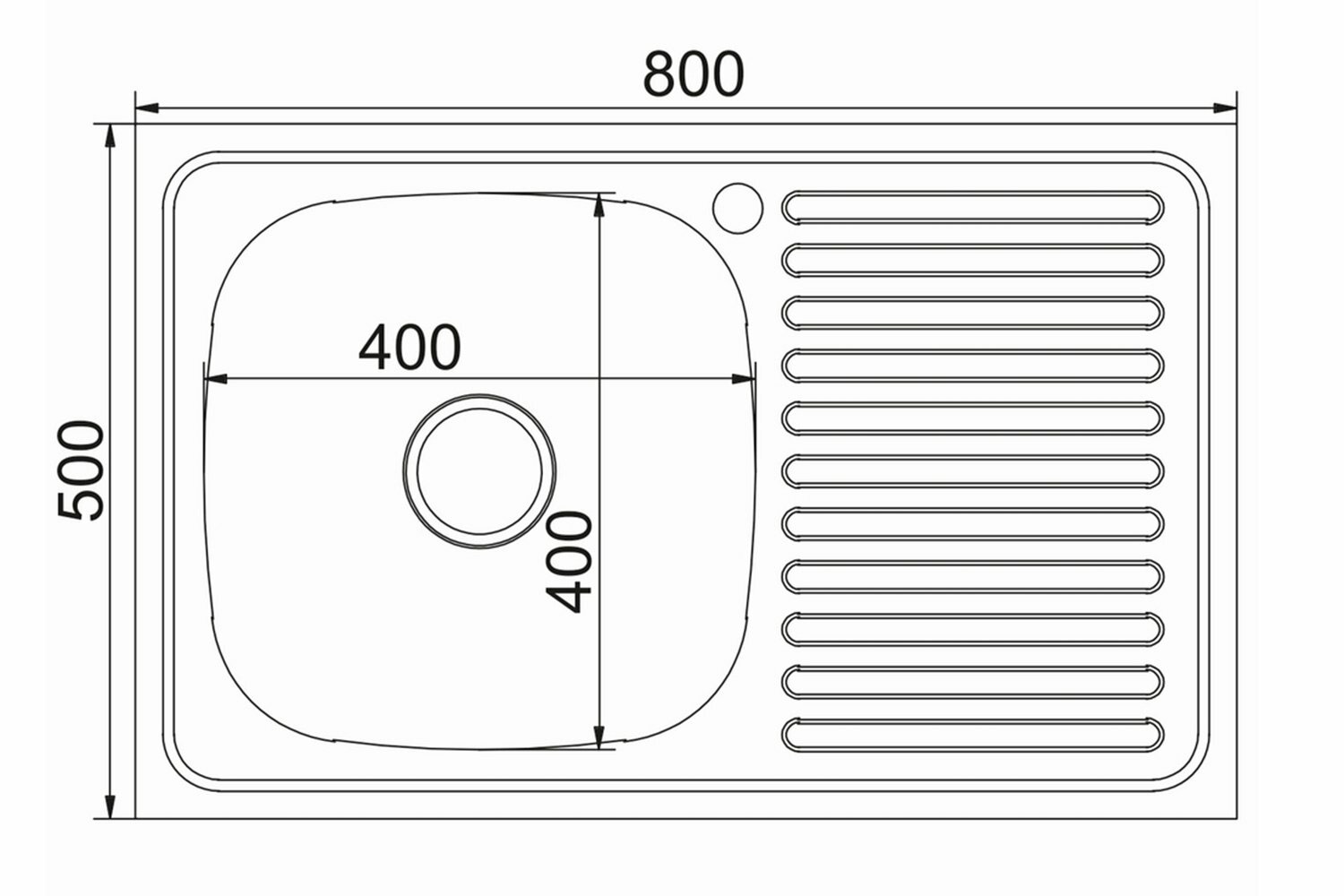 Накладная кухонная мойка Mixline из нержавеющей стали прямоугольная 50х80 см выпуск 3 1/2 глубина 16 см левое крыло