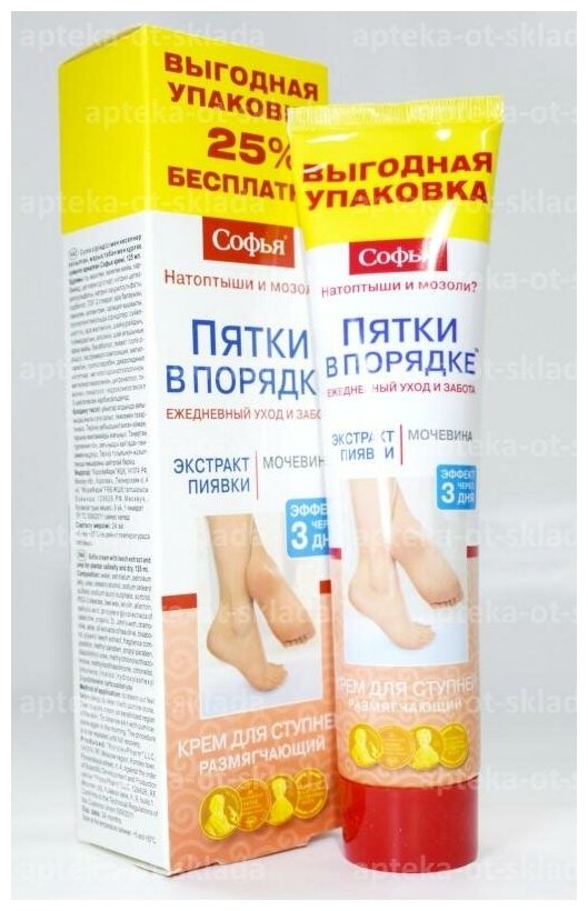 Софья крем с экстрактом пиявки и мочевиной для ступней при натоптышах и сухих мозолях туба 125мл