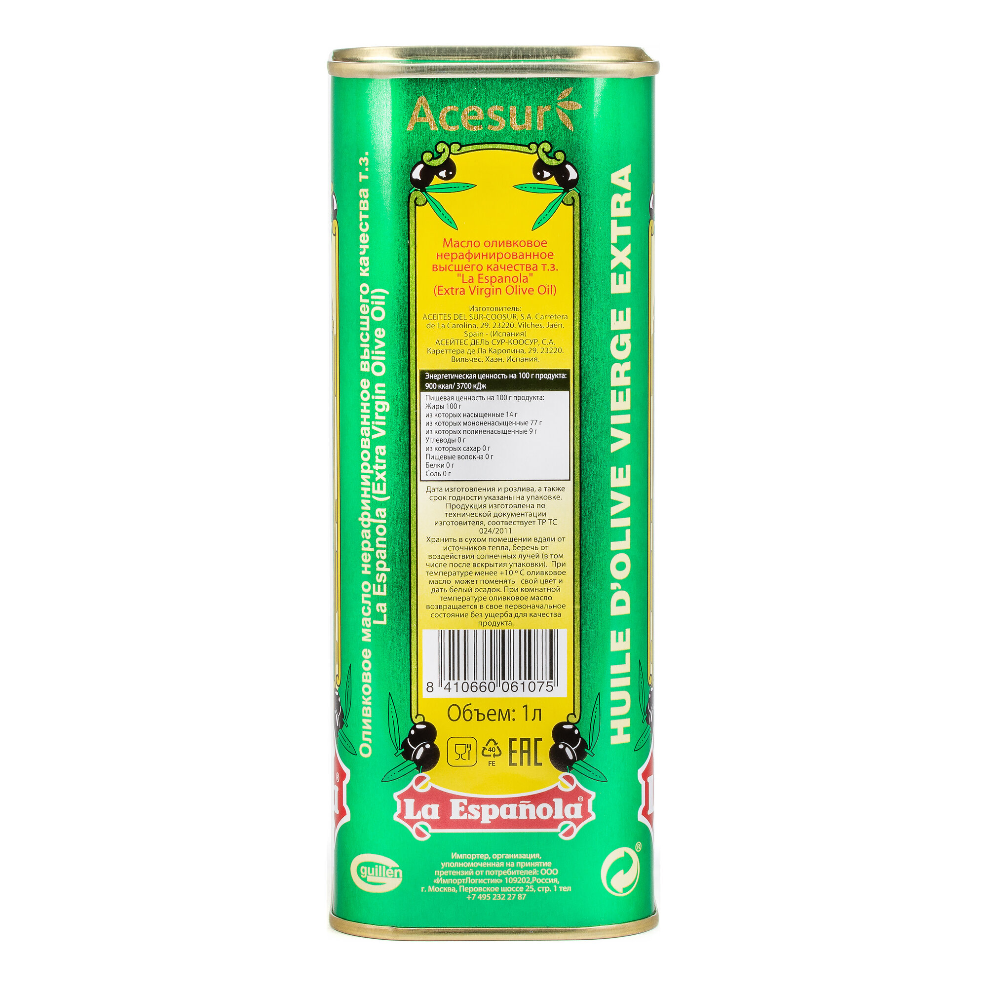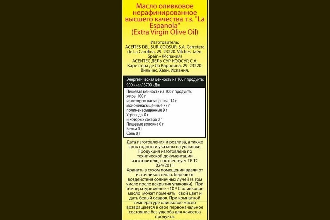 Оливковое масло La Espanola Extra Virgin нерафинированное высшего качества 1л интересное:
