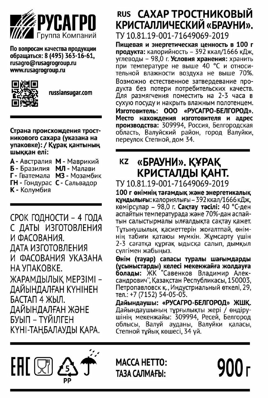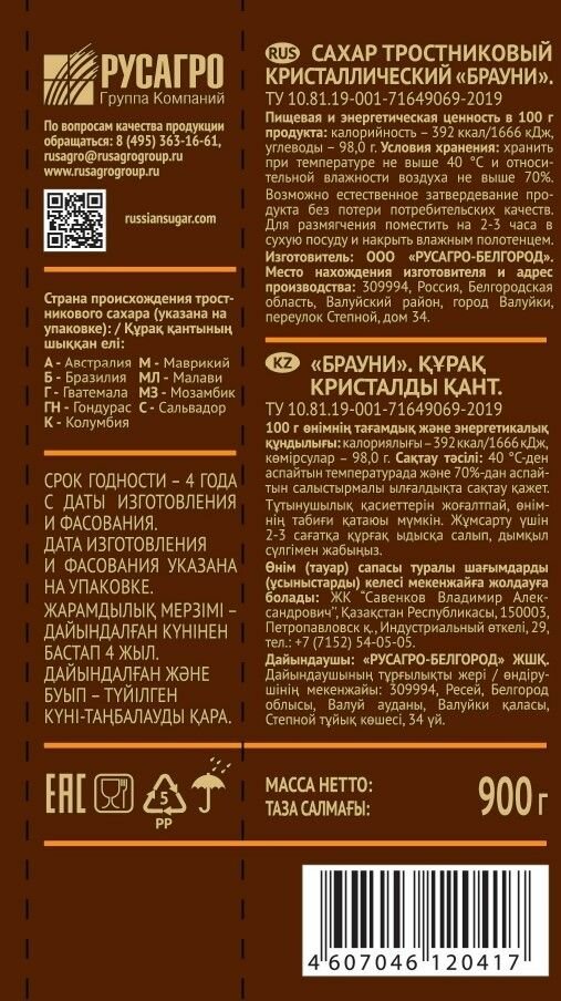 Сахар-песок тростниковый Брауни Gold, 900г. интересное: