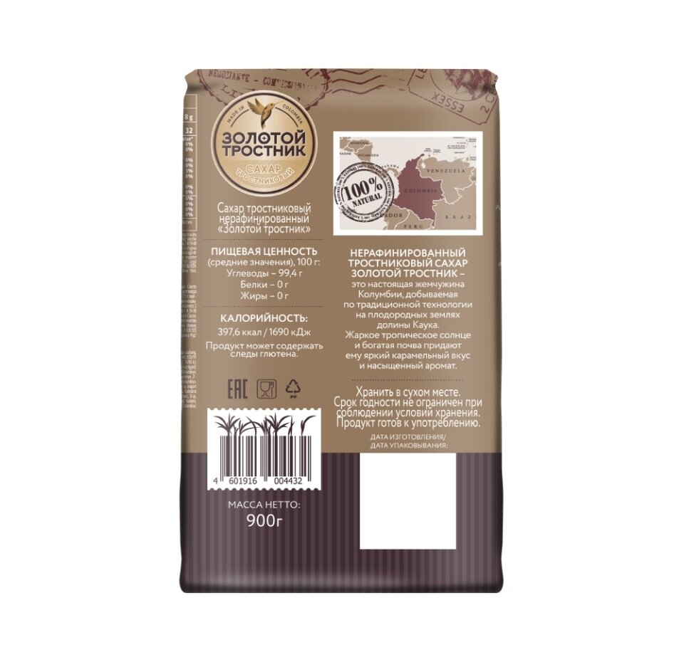 Сахар Золотой тростник тростниковый, сахар-песок, 900 г