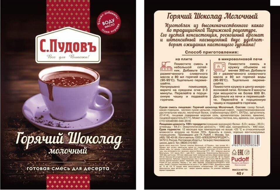 Горячий шоколад молочный С.Пудовъ, 40 г интересное: