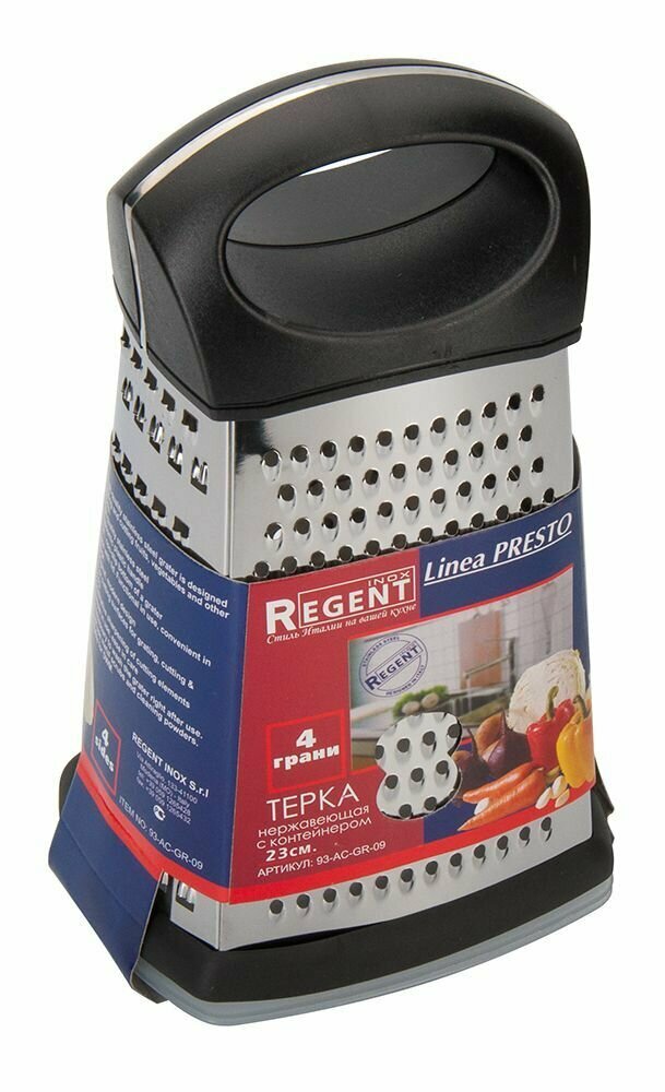 Терка нержавеющая сталь с контейнером 4-х гранная 23 см Regent Presto 93-AC-GR-09