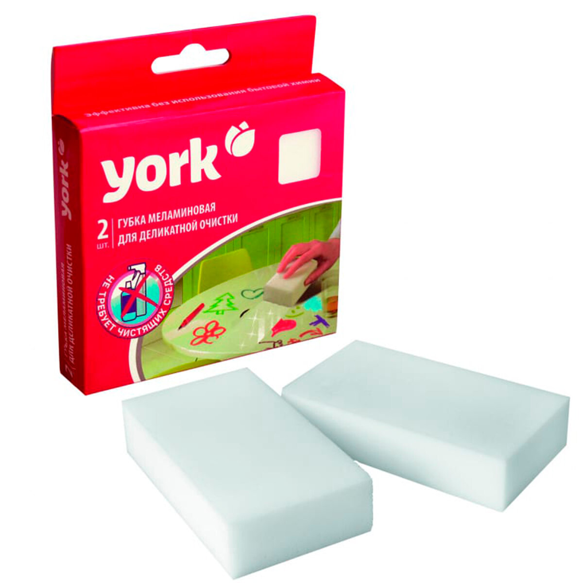 Губки меламиновые York, для деликатной очистки, упаковка 2 шт