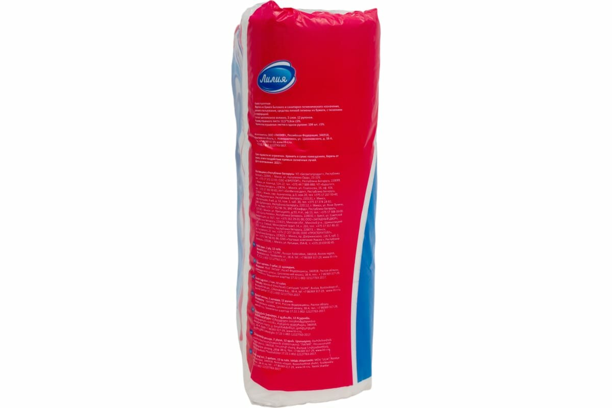 Туалетная бумага Лилия , 2 слоя, 12 рулонов