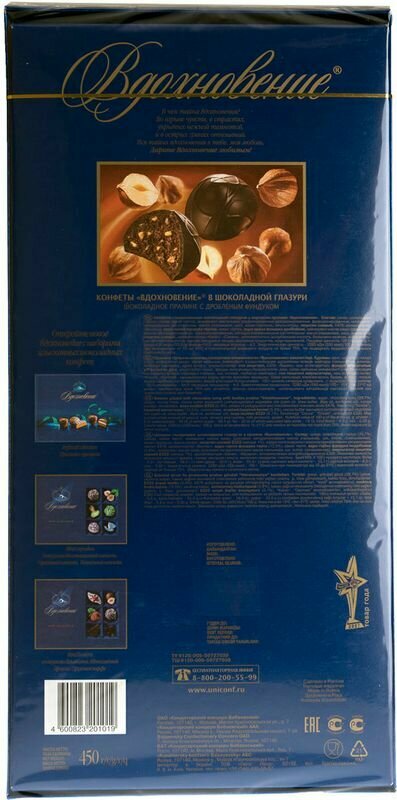 Конфеты шоколадные бабаевский "Вдохновение", классические, 400 г, ББ00055 интересное: