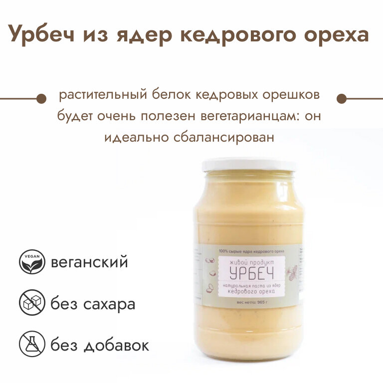 Живой продукт Урбеч из ядер кедрового ореха, 965 г