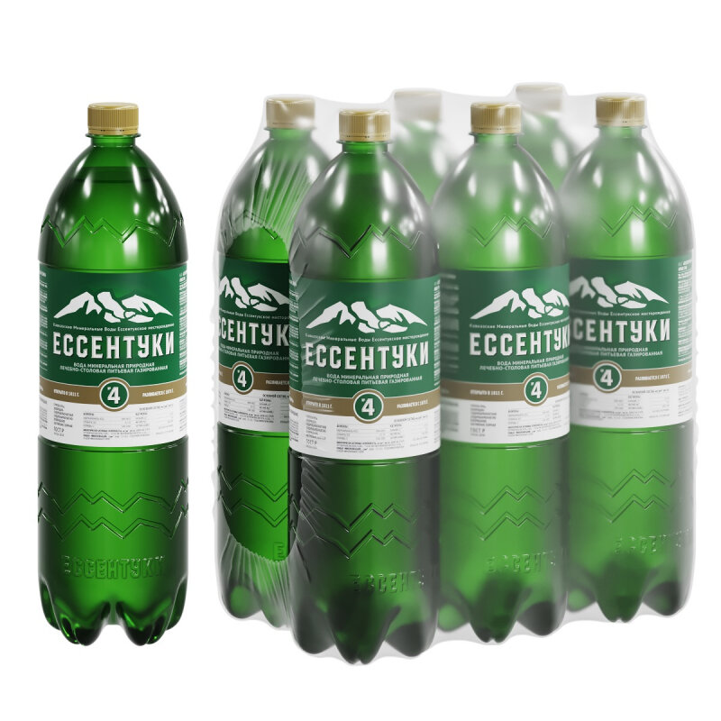 Минеральная вода Ессентуки 4, газированная, 1 л, 6 штук в упаковке