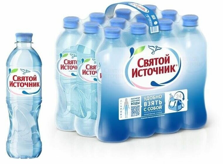 Вода питьевая Святой источник негазированная 0.5 л ПЭТ упаковка 12 штук