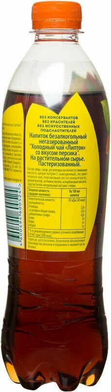 Чай Lipton Персик, ПЭТ, 0.5 л, 12 шт.