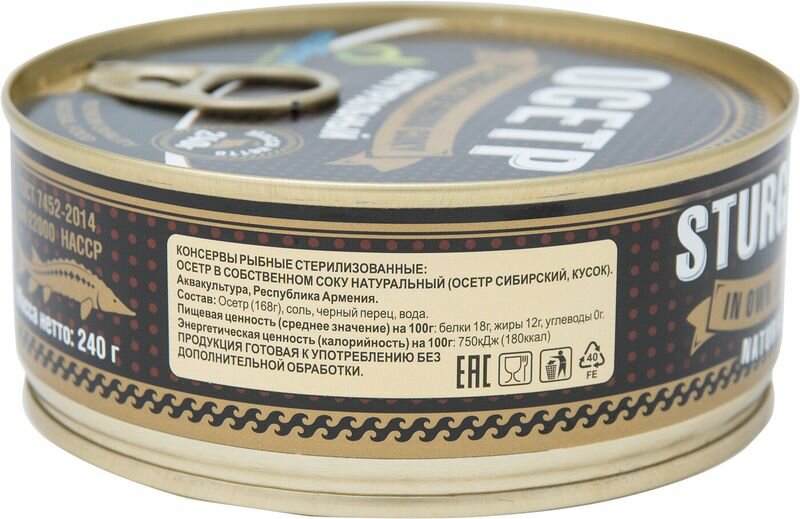 Рыбные консервы Ecofood осетр в собственном соку натуральный, 240г , 1 шт.