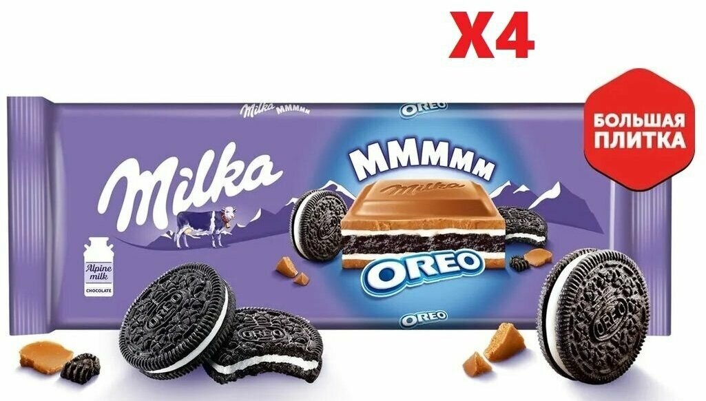 Купить Шоколад Milka молочный с начинкой со вкусом ванили и печеньем Орео 300г 4 шт