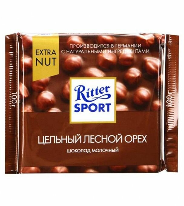 Шоколад молочный Ritter Sport Extra Nut "Цельный орех" 100 гр - 10 шт