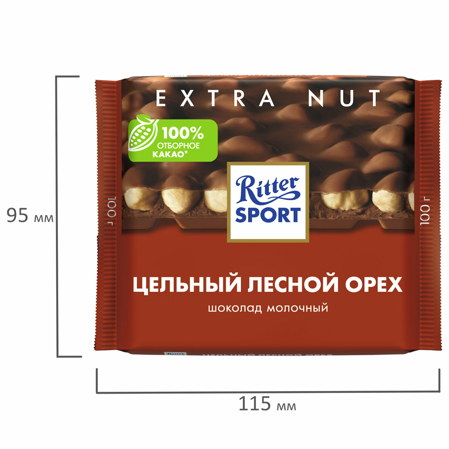 Шоколад Ritter Sport Extra Nut молочный цельный лесной орех, 100 г, 10 уп.