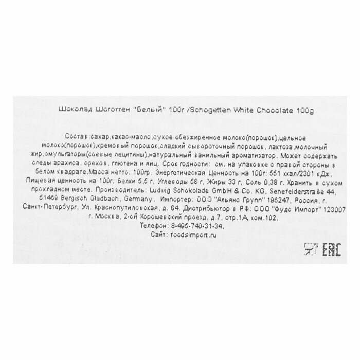 Шоколад Schogetten White Chocolate, 100 г интересное: