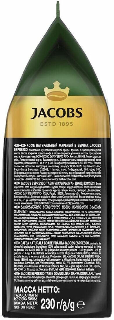 Кофе в зернах Якобс Эспрессо 230г интересное: