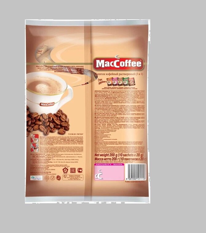 Напиток кофейный растворимый т.з. "MacCoffee Original" (3 в 1), м/уп 20г 10 пакетиков в упаковке