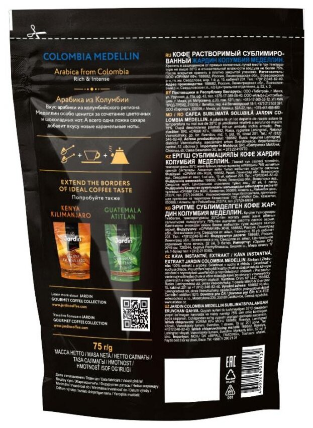 Кофе растворимый Jardin Colombia Medellin, пакет, 12 уп. по 75 г