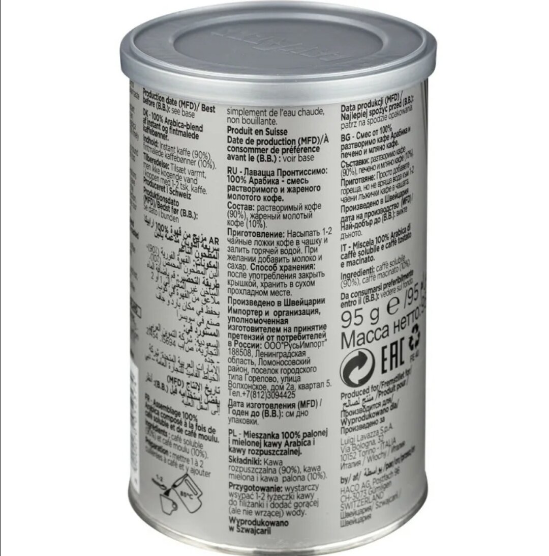 Lavazza Prontissimo Classico 95г кофе растворимый 100% арабика ж/б (5330)