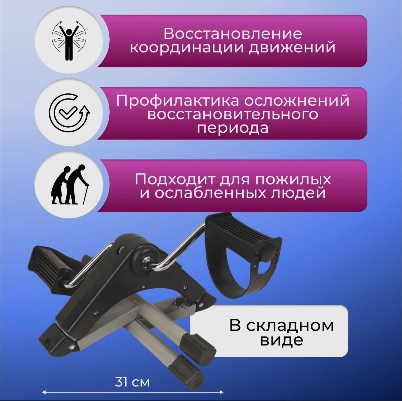 Мини-велотренажер складной Belberg BE-09 для реабилитации, дцп инвалидов и пожилых