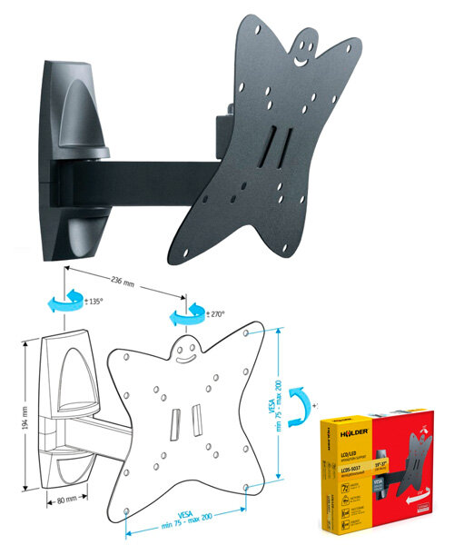 Кронштейн для телевизора 19"-37" HOLDER LCDS-5037 наклонно-поворотный, до 30 кг, черный