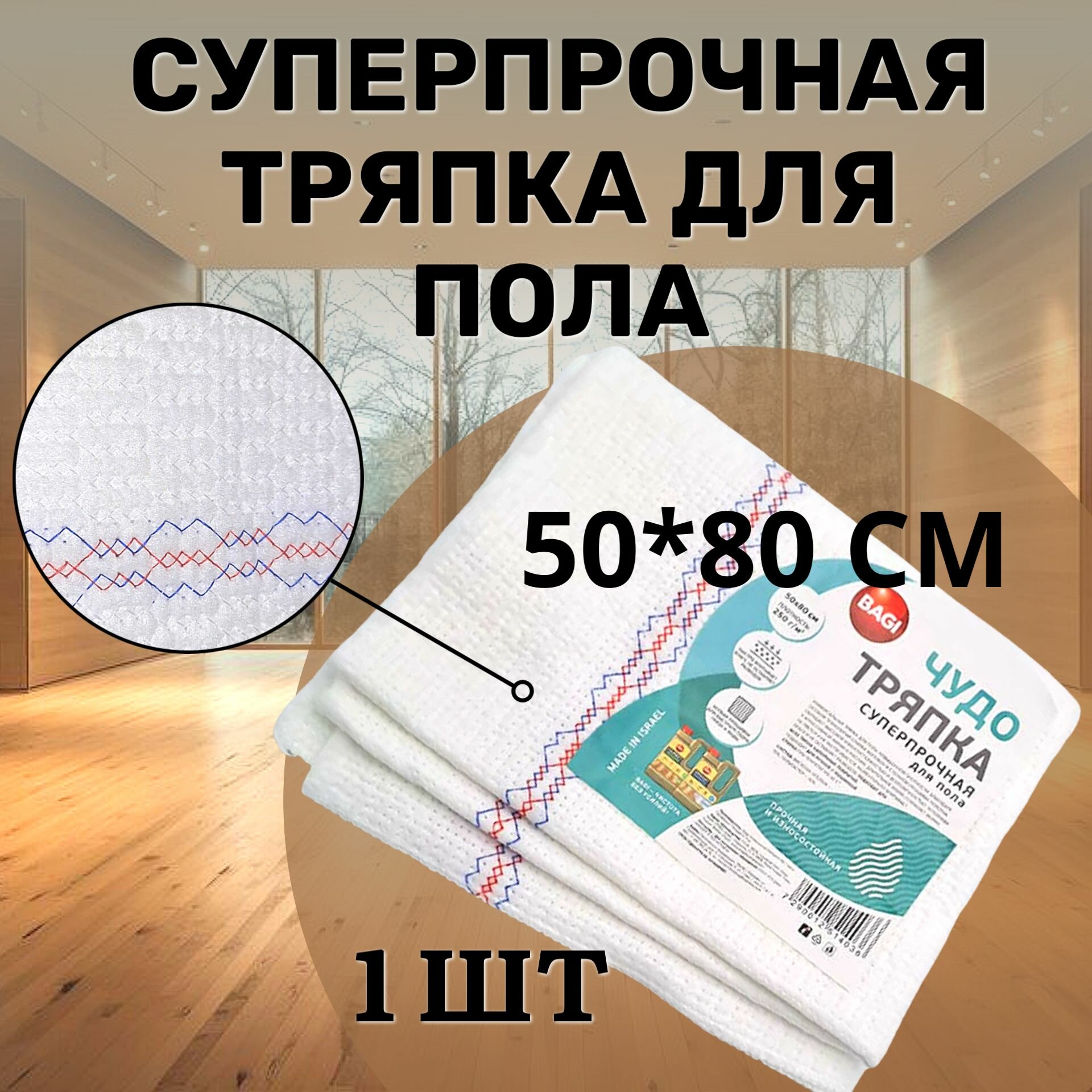 Тряпка для пола BAGI 50х80см б/уп. интересное: