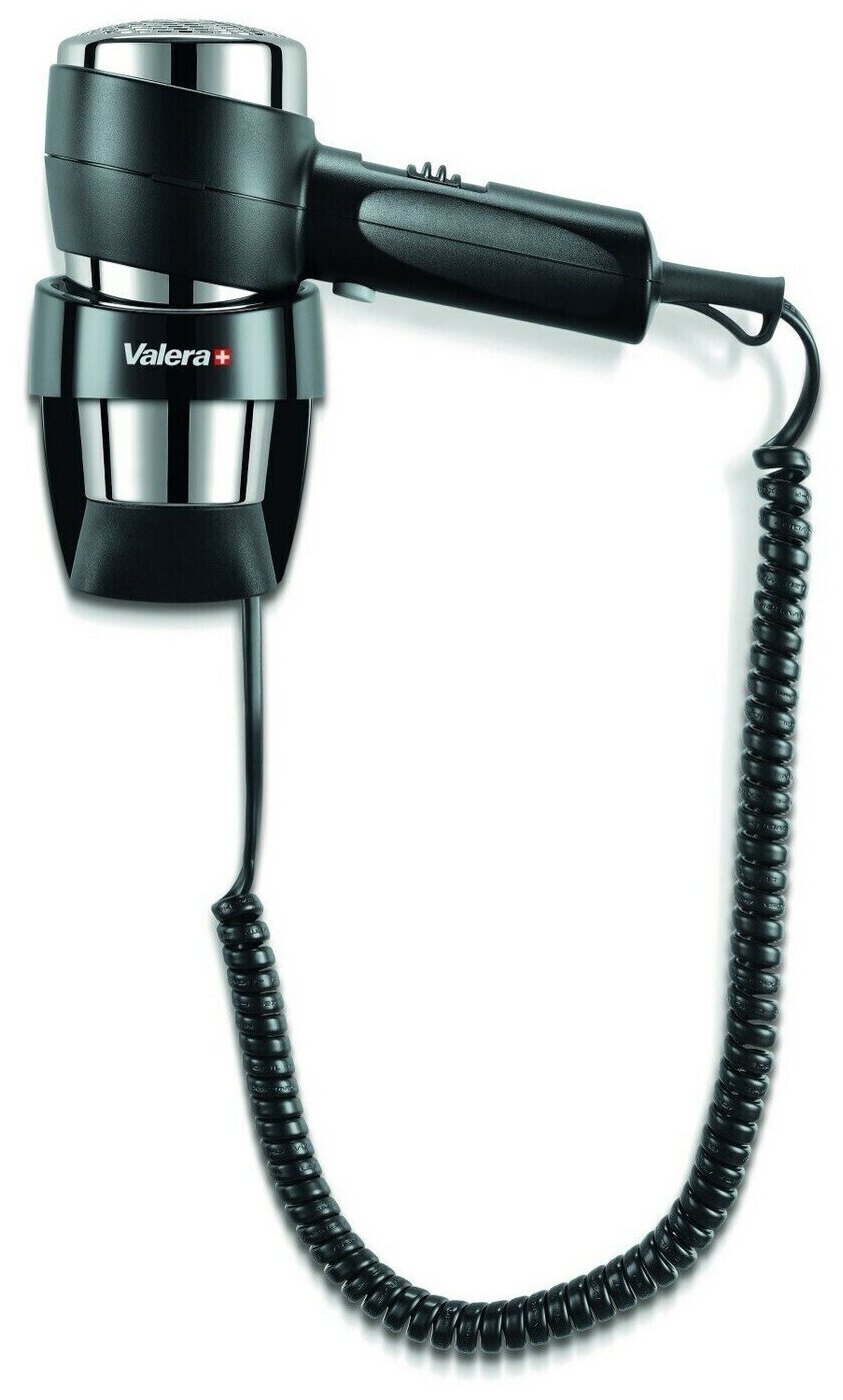 Фен настенный Valera Hospitality Action Super Plus 1600 (542.06/038A black), мощность 1600 Вт, тройная система безопасности, термостат выключения, профессиональный спиральный кабель, холодный воздух, концентратор