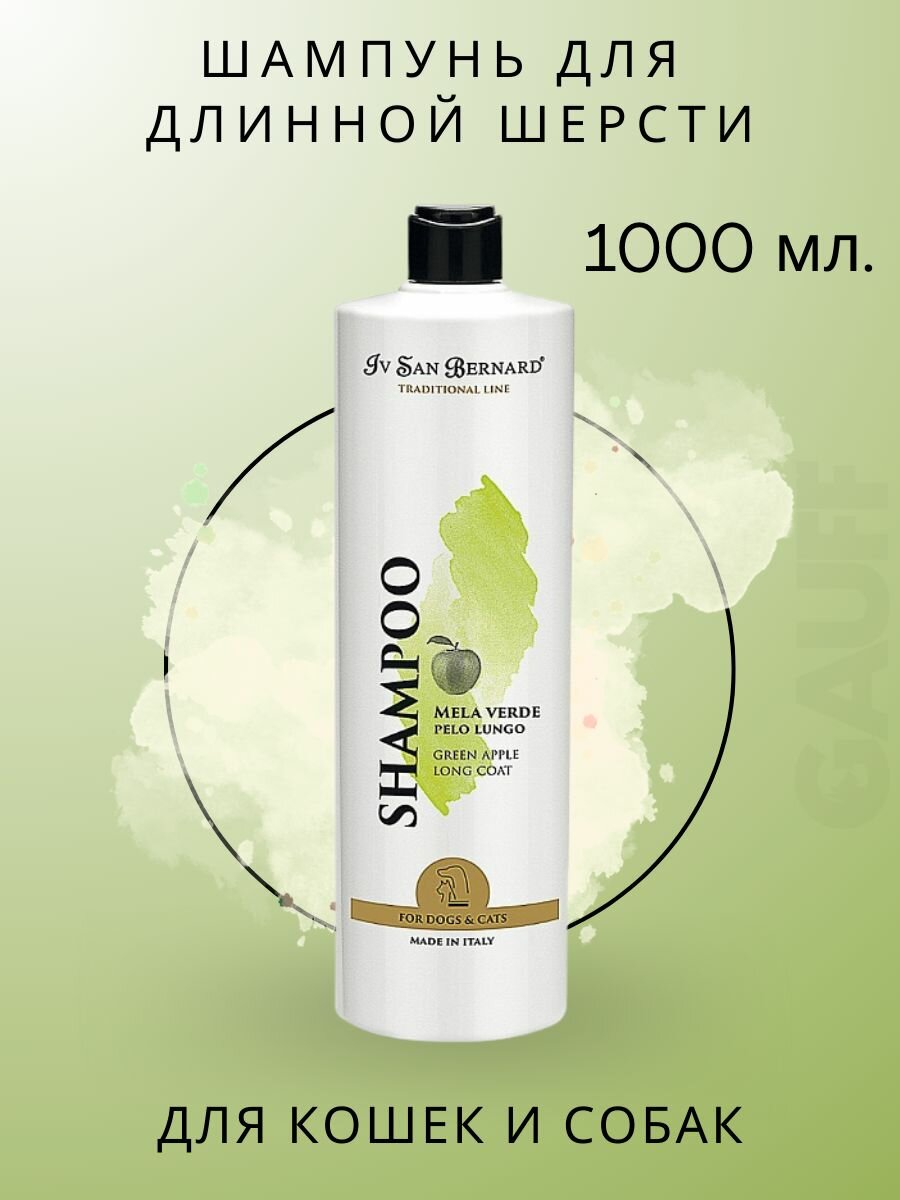 Шампунь Iv San Bernard Traditional Line Green Apple для кошек и собак с длинной шерстью , 1 л