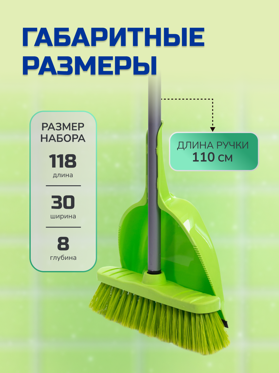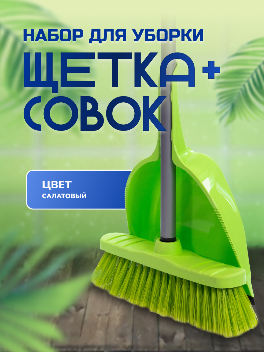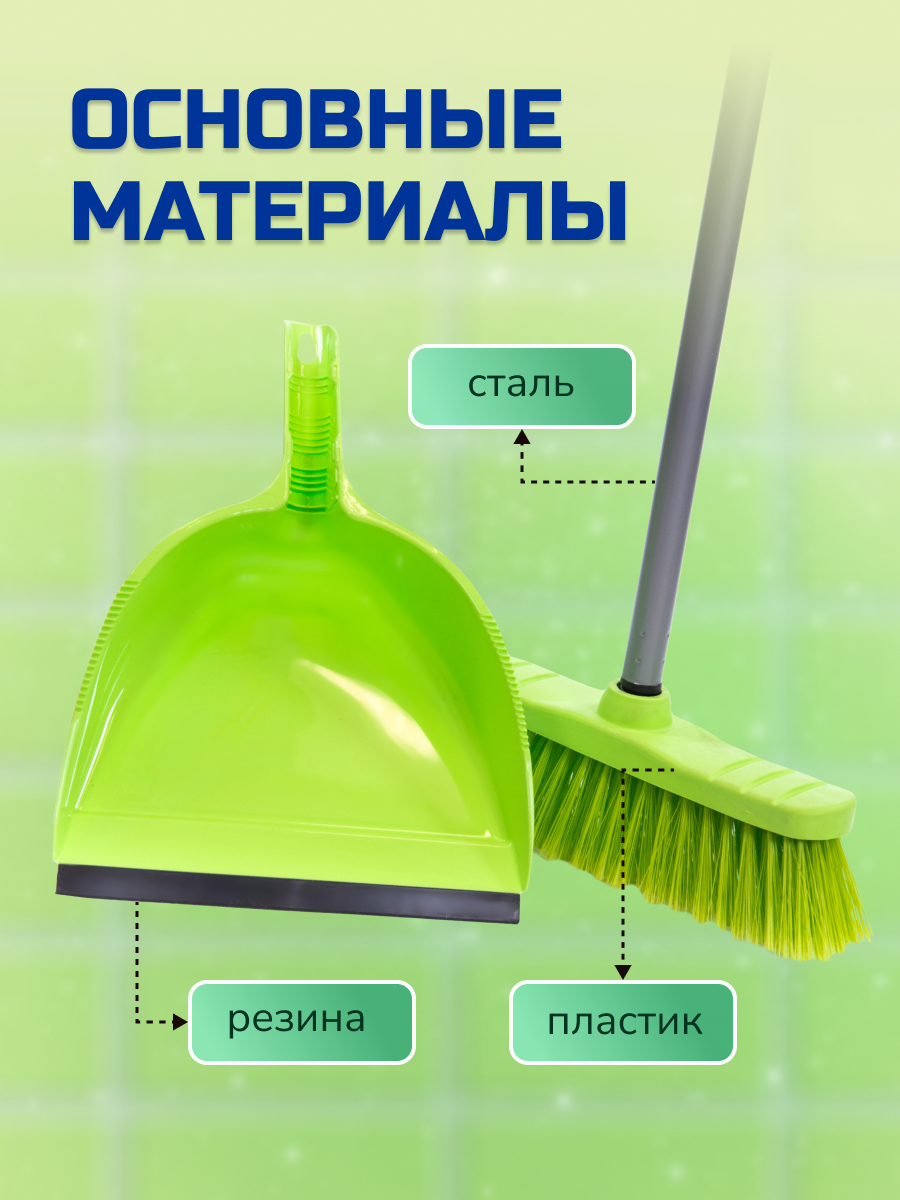 In'Loran Набор для сухой уборки Щетка с совком, ручка 110см., салатовый, Mso-104sl