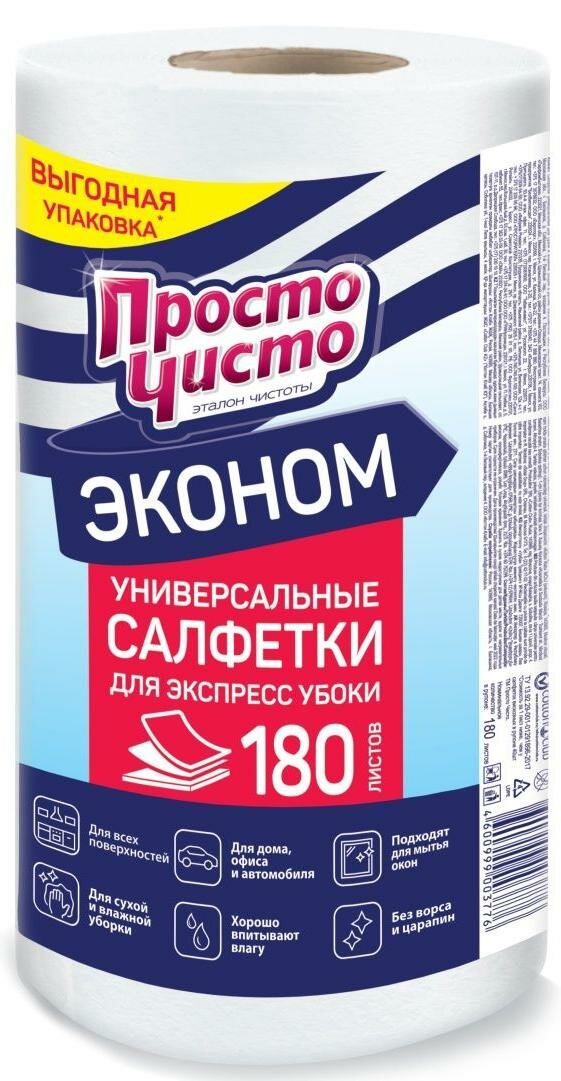 Просто Чисто Салфетки в рулоне для сухой и влажной уборки 1рулон=180шт