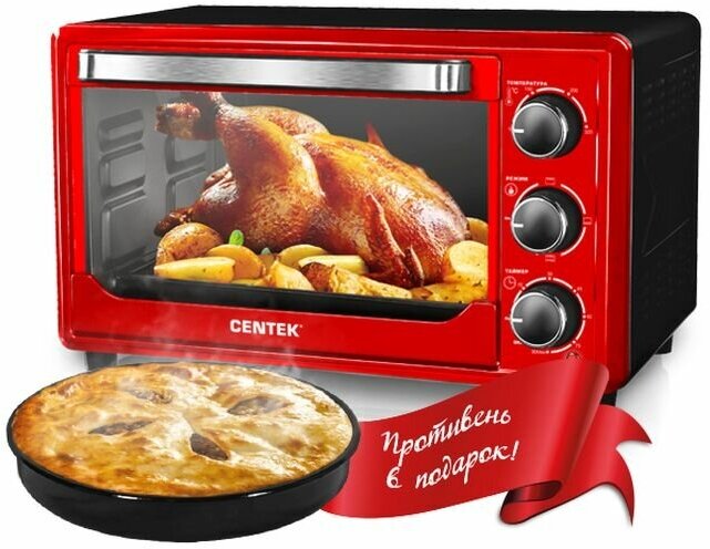 Жарочный шкаф Centek CT-1537-30 RED (красн) <30л> 1600Вт +противень, таймер 90мин, 4 реж., max 320°