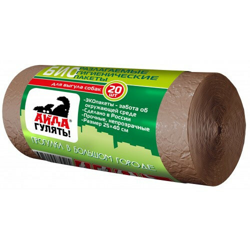 Айда гулять Биоразлагаемые пакеты гигиенические для выгула собак (1 рулон по 20 пакетов)