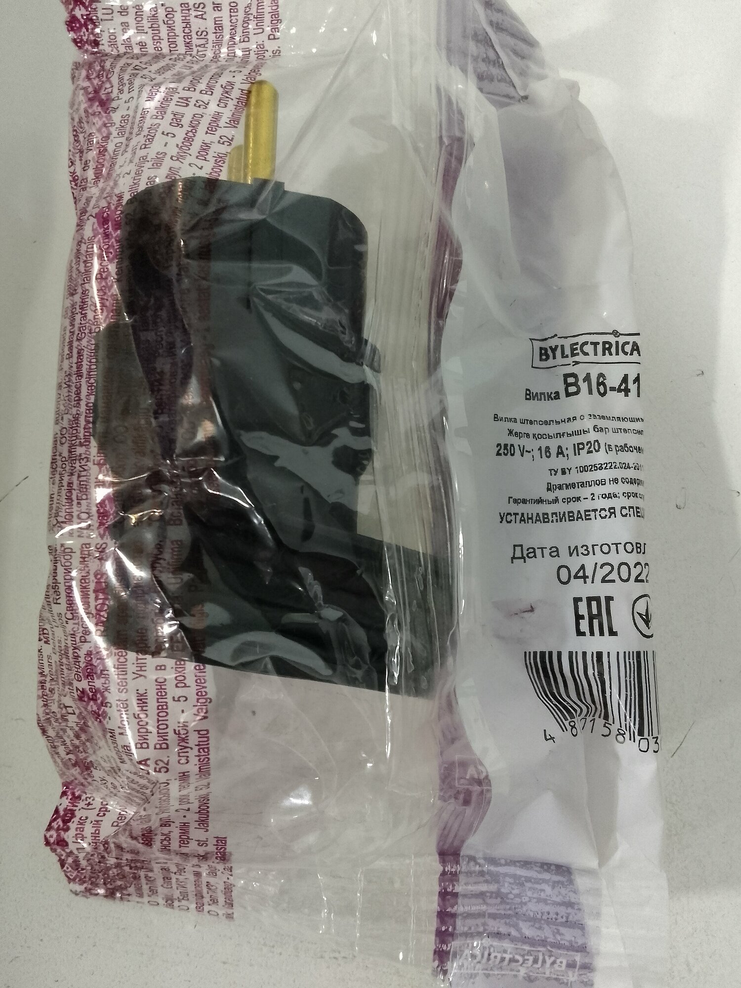 BYLECTRICA Вилка Bylectrica штепсельная с заземляющим контактом каучук, В16-416